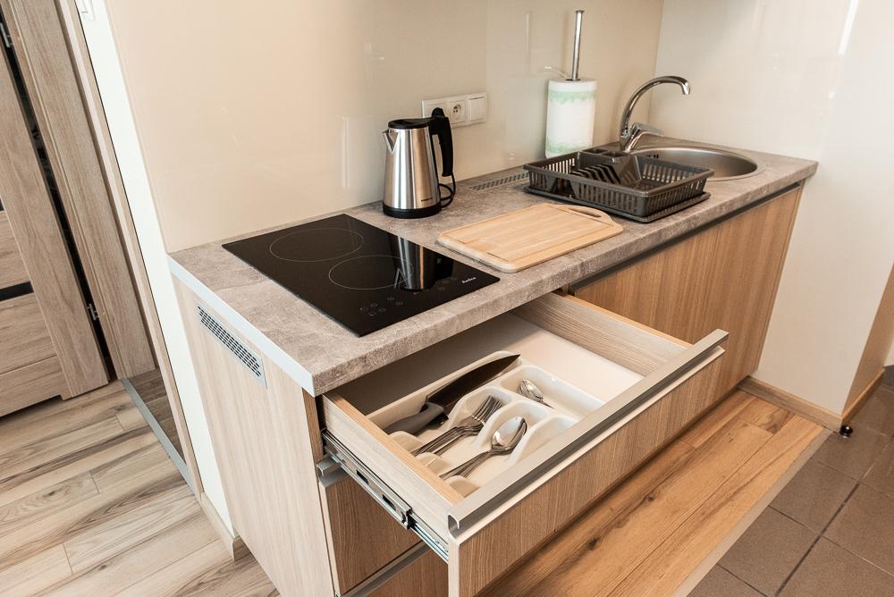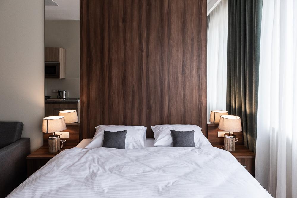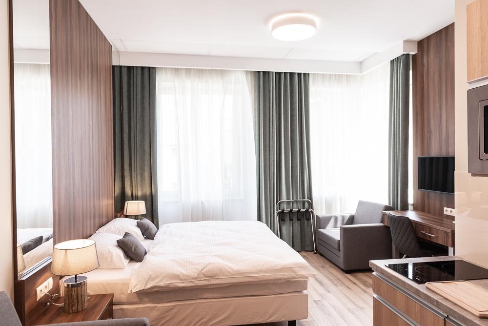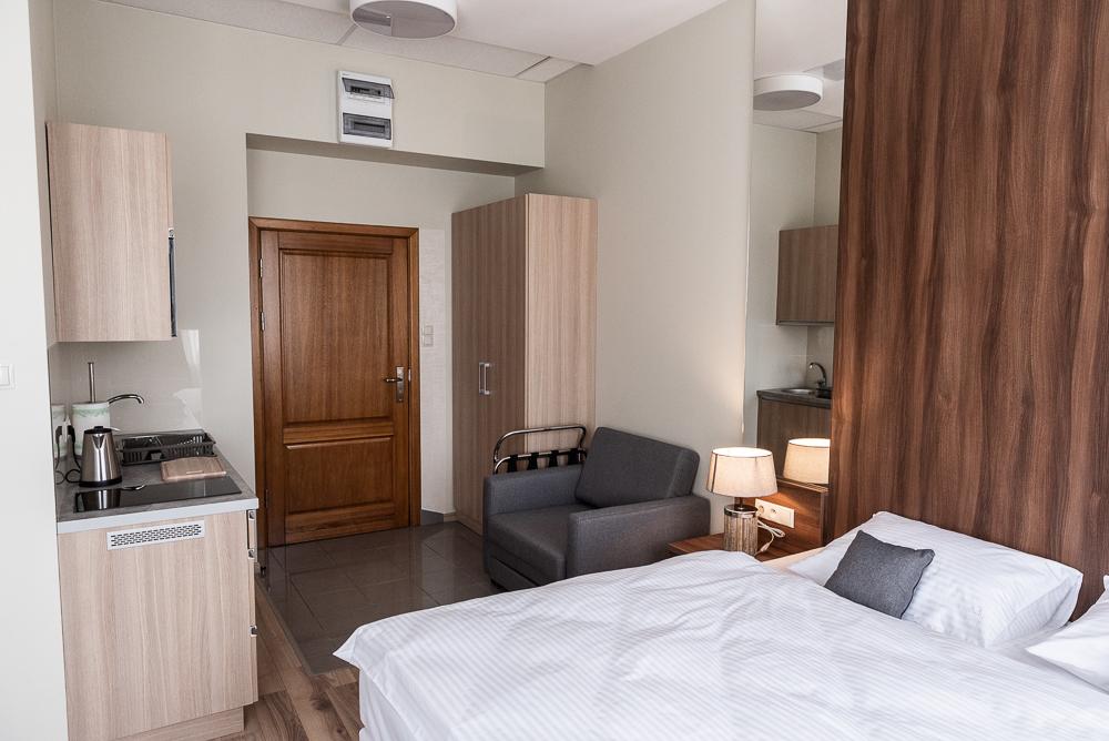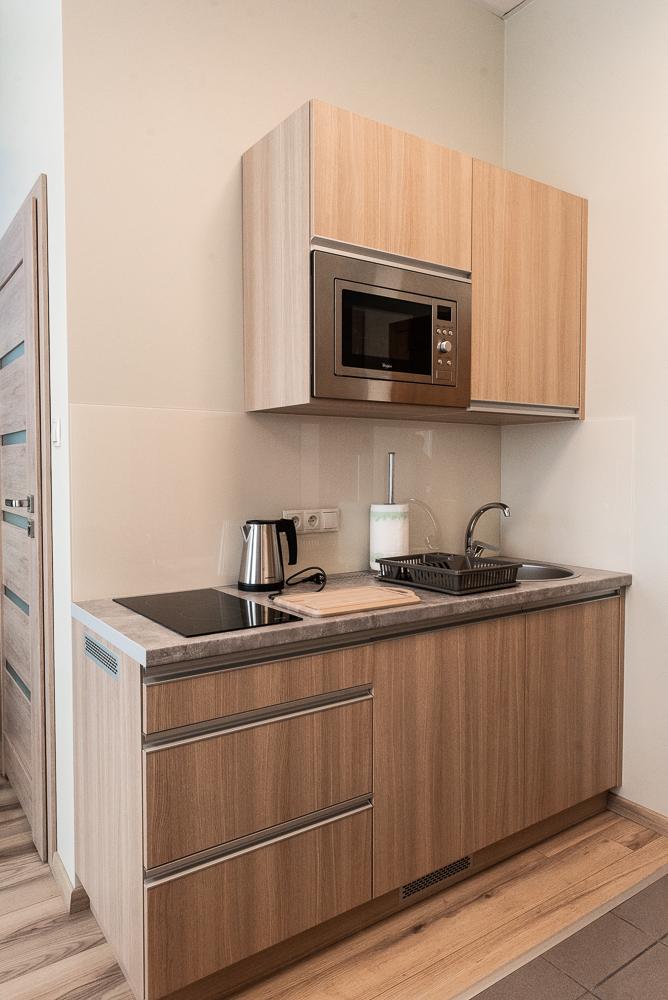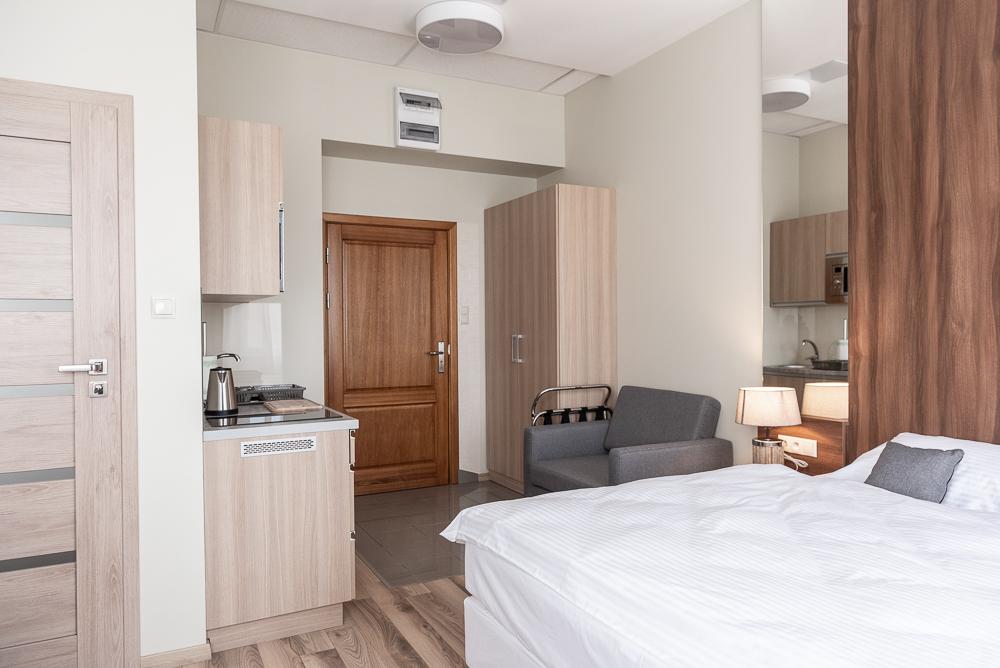 Powierzchnia pokoju/studia 28 m². Apartament maksymalnie dla 2 dorosłych osób + 2 dzieci (2 x dostawka). To klimatyzowane studio dysponuje w pełni wyposażonym aneksem kuchennym, zestawem do parzenia kawy i herbaty, czajnikiem elektrycznym, oraz telewizorem z płaskim ekranem z dostępem do kanałów satelitarnych, wi-fi, oraz bardzo wygodnym łóżkiem z podwójnym materacem i prywatną łazienką.